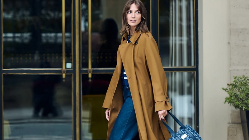 Sa ceinture en tissu à nouer souligne la taille.