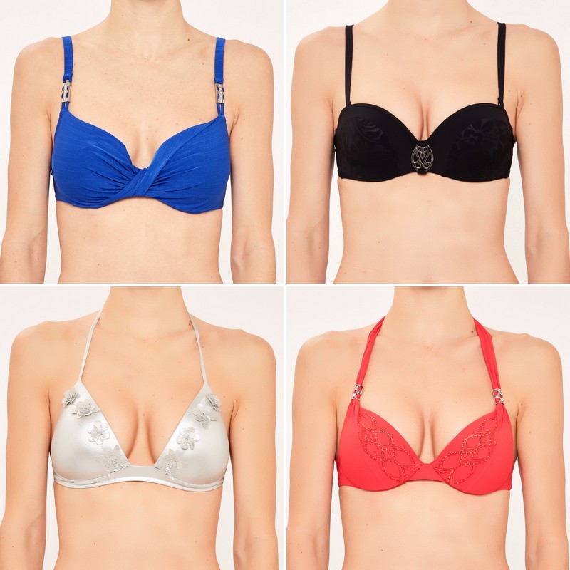On compose son bikini de l’été parmi des hauts aux coupes bandeau, corbeille, triangle, à armatures, à coques et des slips classiques, culottes hautes ou taille basse, à assortir.